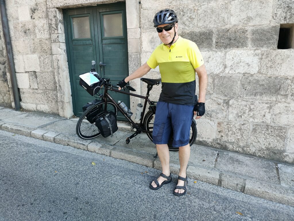 Geschlafen haben wir nicht wirklich gut im «B & B Rooms Garden» beim Vermieter Darko! Der VerkehrslĂ€rm war so laut, dass wir dachten, wir schlafen auf dem Pannenstreifen der 3-spurigen Autobahn Mailand-Bologna morgens um sieben Uhr!!! Der Start aus der wunderschönen Stadt Dubrovnik war sehr steil, die Temperatur schon heiss und das Verkehrsaufkommen in Richtung Flughafen war gross. Nach ca. einer Stunde hatten wir eine tolle Begegnung. Wir haben Andreas mit seiner HĂŒndin aus Bayern, genau gesagt aus MĂŒnchen, getroffen. Ein ganz cooler Typ. Er hat in MĂŒnchen seine «Zelte» abgebrochen, sein Haus verkauft und ist jetzt nur noch mit dem «Radl», seinem in Holland gefertigten Spezialvelo, unterwegs. Im Januar 2023 ist er in MĂŒnchen gestartet und hat bereits 3000km zurĂŒckgelegt. Sein Ziel ist Georgien. NĂ€chstes Jahr wird er auf dieselbe Art und Weise nach Thailand radeln! Um ca. 12.00Uhr sind wir an der Grenze Kroatien-Montenegro eingetroffen; âŠ..eine schlechte Zeit fĂŒr einen GrenzĂŒbertritt!!! Wir warteten ca. eine halbe Stunde. Grenzpersonal war zwar viel unterwegs aber alle waren irgendwie mit ihrem Mittagessen/Mittagszeit beschĂ€ftigt!!! SpĂ€ter, wĂ€hrend einer kurzen Mittagsrast haben wir bereits wieder eine Unterkunft in Budva gebucht. Das heisst jetzt natĂŒrlich auch, dass wir trotz langsam schweren Beinen, Budva erreichen mussten. Um ca. 15.30Uhr sind wir durch ein Dorf Richtung Perast gefahren. Am Schiffshafen haben wir gesehen, dass man eifrig daran war eine FĂ€hre mit Fahrzeugen zu laden. Ich (Manfred) sagte noch zu Ueli wir könnten eigentlich auch die FĂ€hre nehmen (Eingebung), ist sicher eine AbkĂŒrzung. Er meinte, nein, es ist nur noch kurz bis Pestra. Nach ein paar hundert Meter haben wir angehalten und noch einmal genau auf das Googel Maps geschaut. Wir sind erschrocken!!! Der Weg via Pestras um die ganze KĂŒste wĂ€re zusĂ€tzlich 50-60 Kilometer lĂ€nger gewesen und dies zu den 95km mit 1000 Meter Anstieg die wir ohnehin hatten! Wir haben sofort und spontan reagiert und sind zurĂŒck zur FĂ€hre gefahren (gerast). Die FĂ€hre war schon fast abfahrtbereit als wir auch noch schnell an Bord gingen. Als wir zahlen wollten, sagte uns der KapitĂ€n nur «For bicycle is free!!!» Wir freuten uns und genossen die kurze Ăberfahrt. Danach nahmen wir die restlichen Kilometer in Angriff und sind dann um ca. 18.00Uhr im Hotel Vela in Budva angekommen.